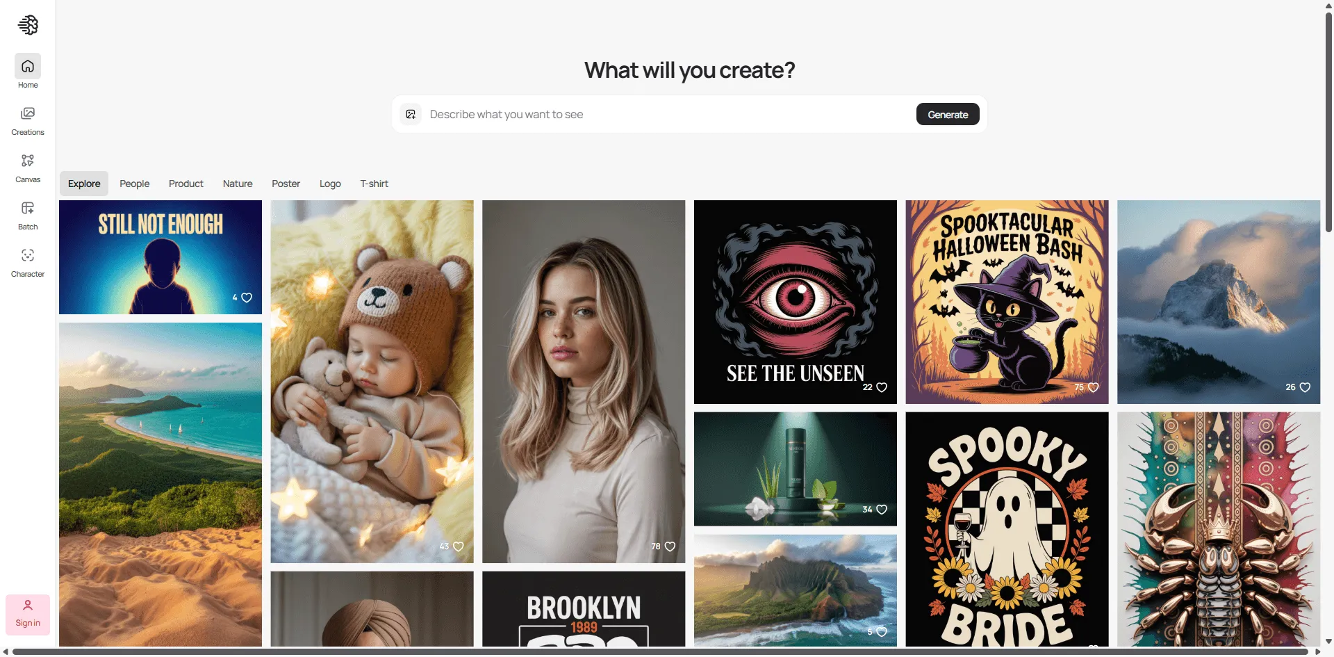 The interface is clean, easy to figure out, and has specific styles for things like logos, social media posts, posters. It's clearly built for actual use cases, not just making AI art for fun.