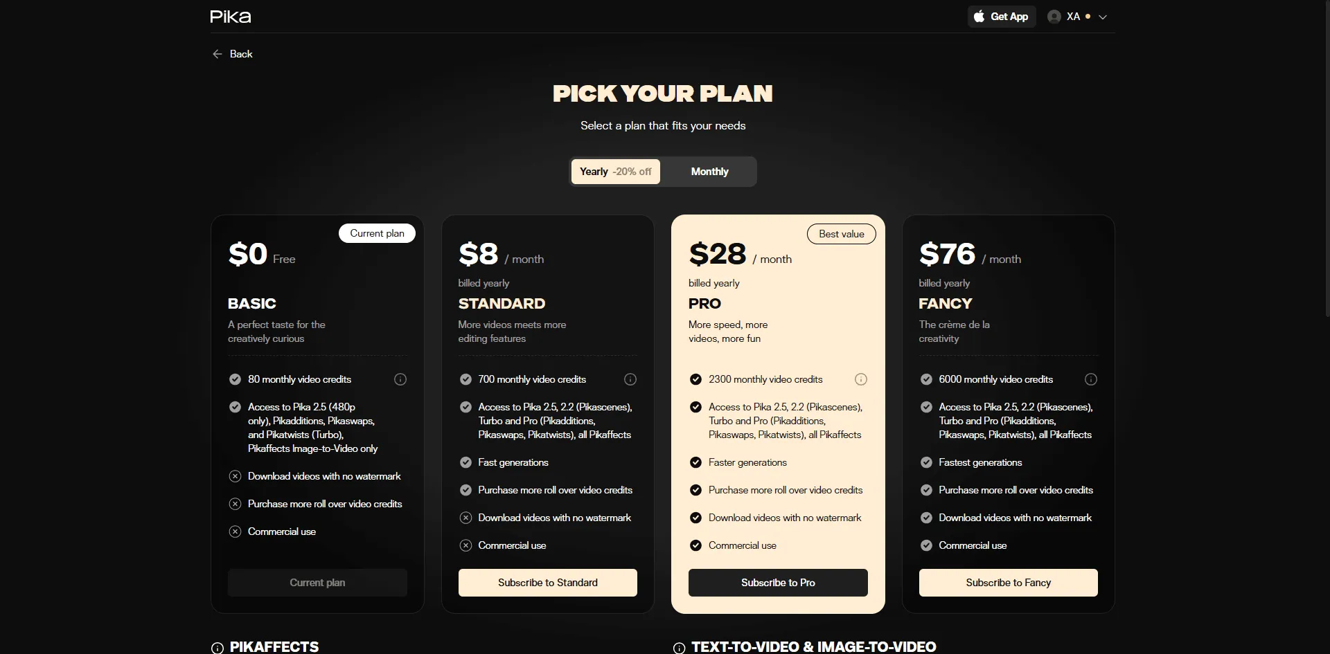 - Try Pika's free tier for one week