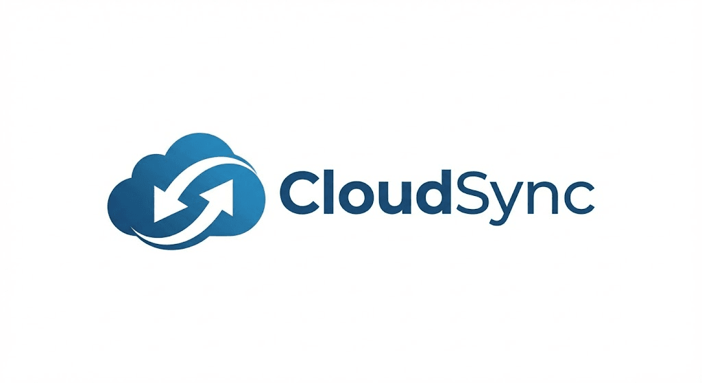 Test: Gestaltung eines modernen Tech-Startup-Logos unter Einbindung des Unternehmensnamens „CloudSync“