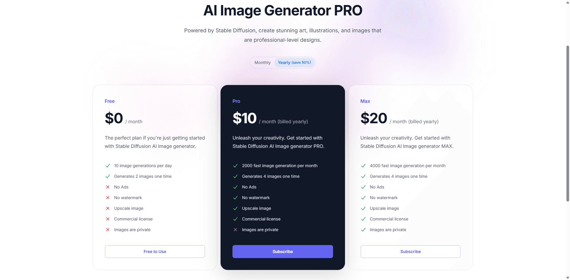 - Mega: $120/month for people generating hundreds of images daily